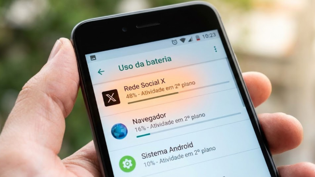 O Sinal de Alerta: Se você usou o aplicativo por 5 minutos, mas ele mostra 2 horas de atividade em segundo plano, você encontrou um vampiro. Ele está drenando sua bateria muito mais do que deveria para te entregar notificações.