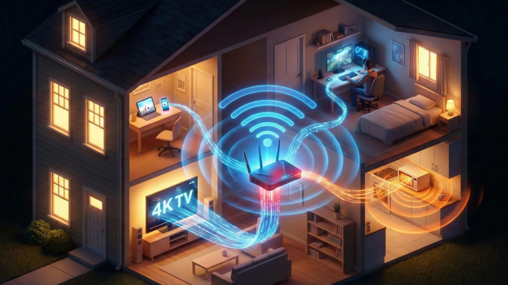 Será que a operadora “fecha a torneira” à noite? Embora o congestionamento externo exista, na maioria das vezes, o problema está dentro da sua sala. O padrão de consumo noturno é completamente diferente do diurno, e seu roteador pode não estar aguentando o tranco.